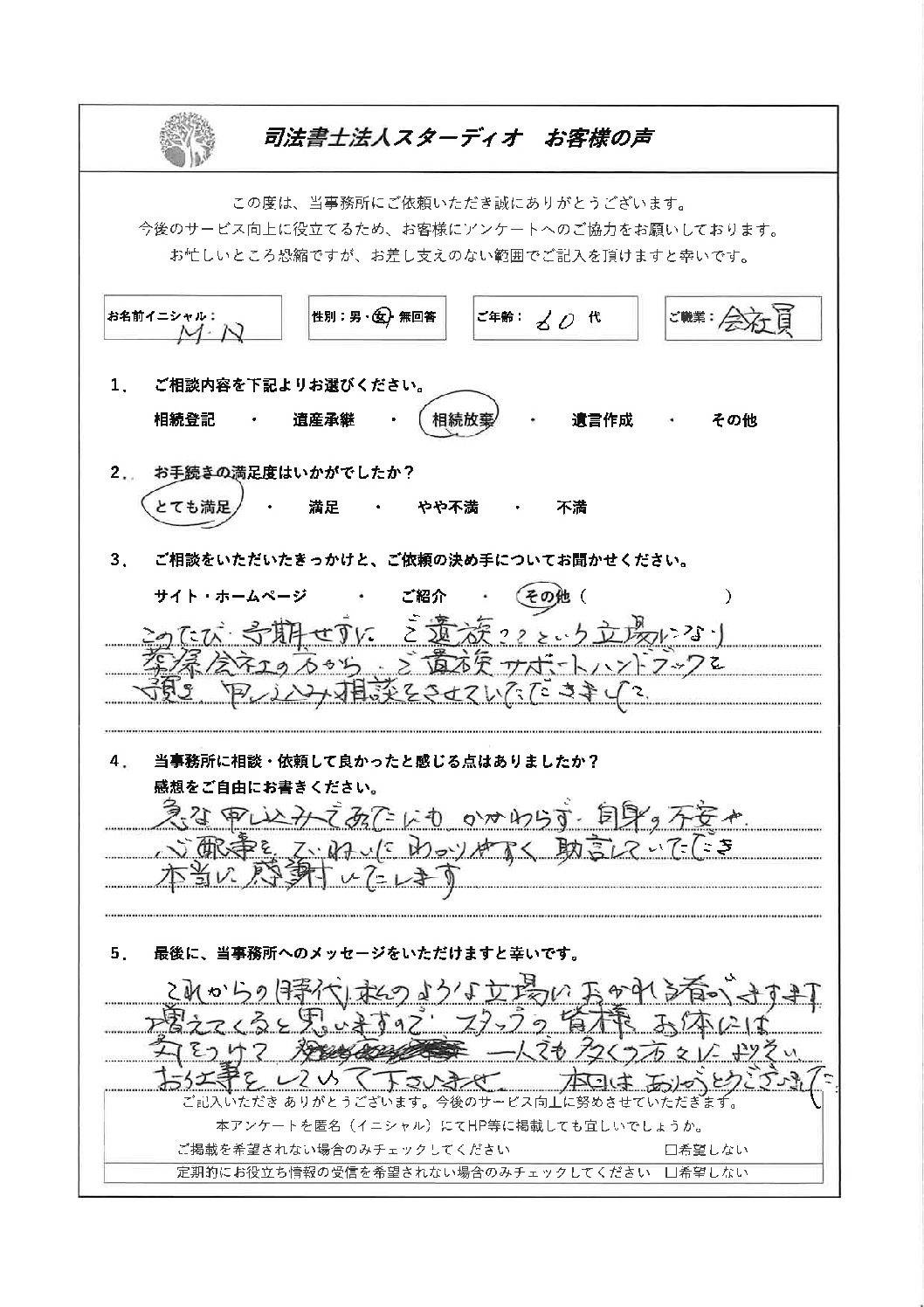 ◆ ご相談いただいたきっかけ その他 このため、予期せずにご遺族という立場になり、葬祭会社の方からご遺族サポートハンドブックを頂き、申し込み相談をさせていただきました。 ◆感想・相談して良かったこと 急な申し込みであった […]続きを見る