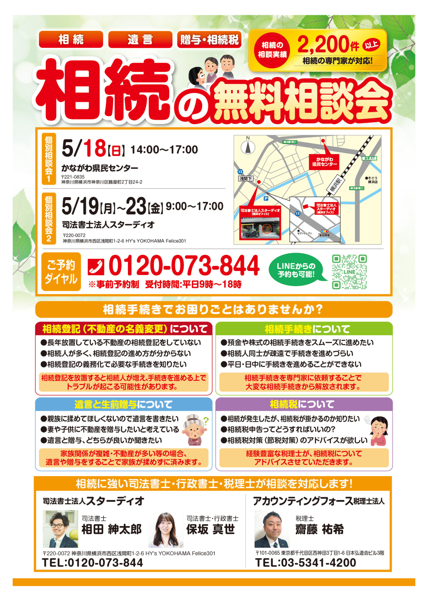 2025年 5月19日(月)~23日(金) 9:00~17:00 司法書士法人スターディオ 横浜オフィス