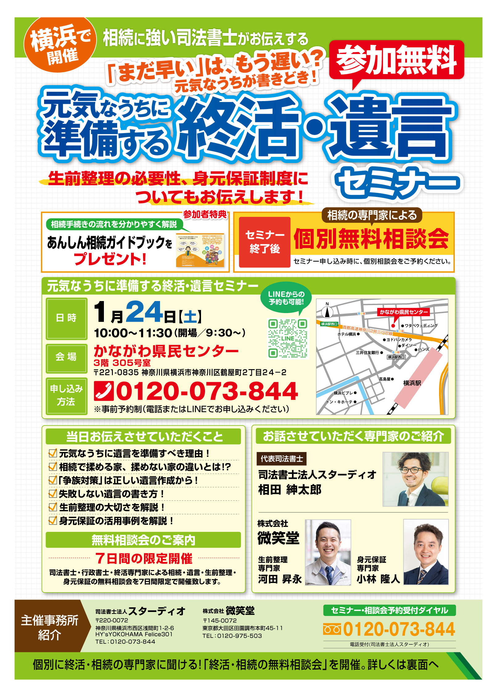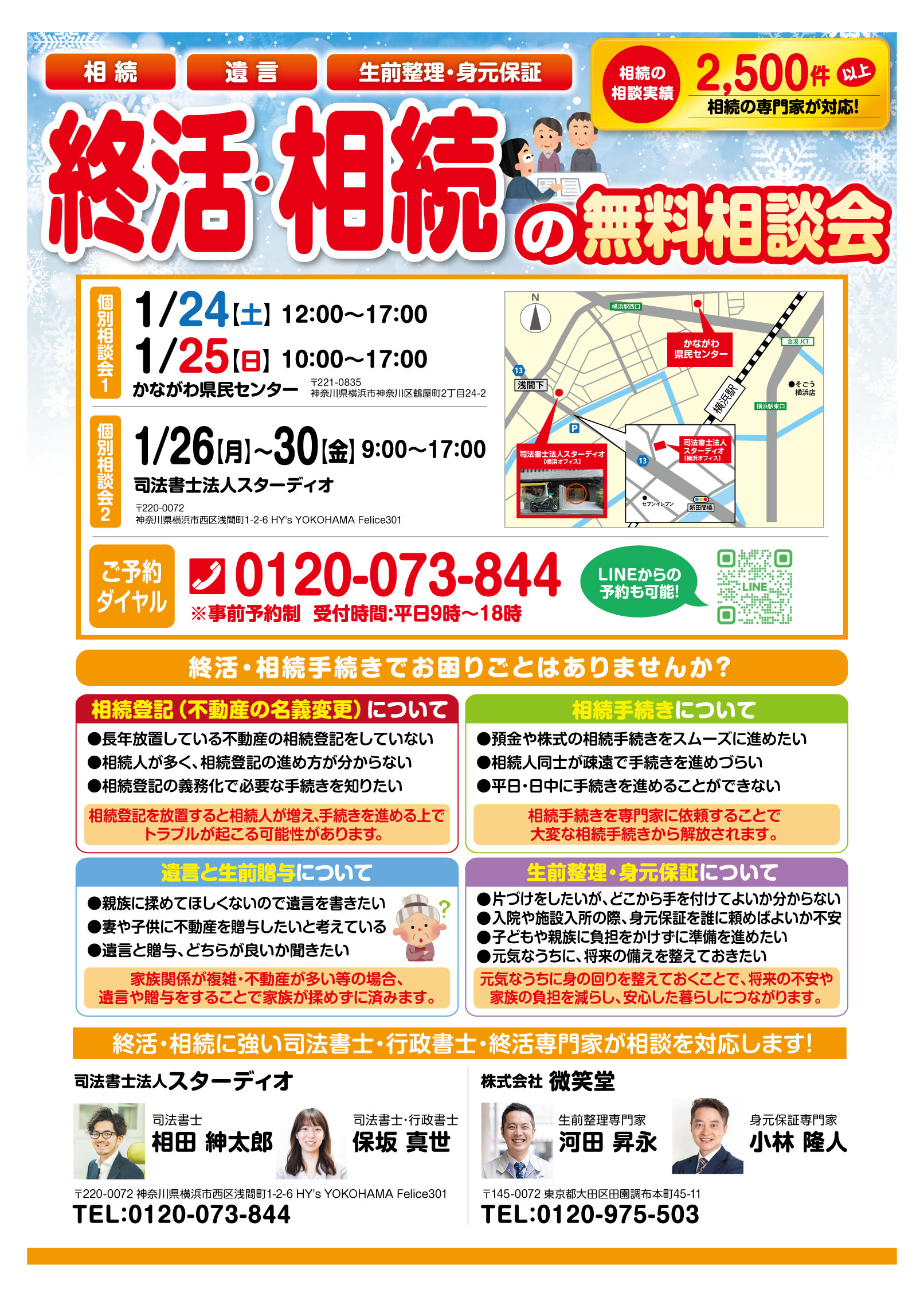 2026年 1月26日(月)~30日(金) 9:00~17:00 司法書士法人スターディオ 横浜オフィス